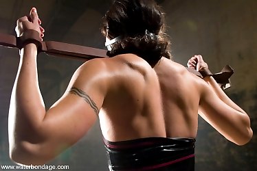 One of our favorite bondage heroines is back for another round of hot, wet fun. Wenona is ordered to fuck herself near the beginning of scene one. While already in neckwrist stocks and high heels, Wenona rises to the occasion. In scene 2, her mental resolve is tested in a well planned predicament bondage spread-eagle. Wet Dreams enters scene 3 while Wenona is totally screwed....down. After some self-bondage, negative gravity nipple weights are used against her during scene 4 in the Houdini tank. We love you Wenona!