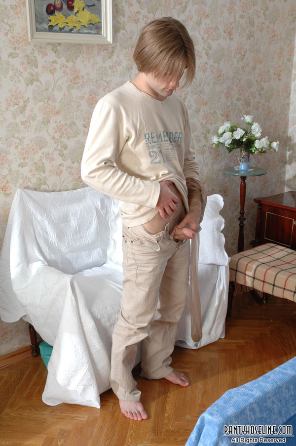 Kinky guy enjoying the feel of sheer nylon and getting steamy pantyhosejob